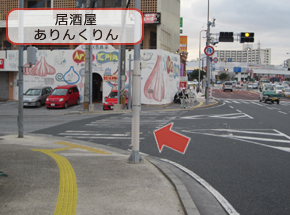 居酒屋「ありんくりん」がある信号から