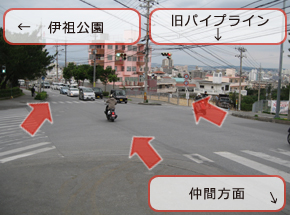 浦添城跡通りとパイプラインの交わる交差点を