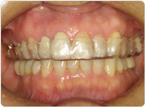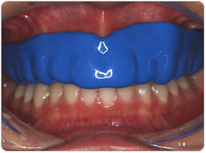 2.ジェルが適切に注入されていることを確認し、トレイを装着します。装着方法や装着時間は、歯科医院の指導を受けください。